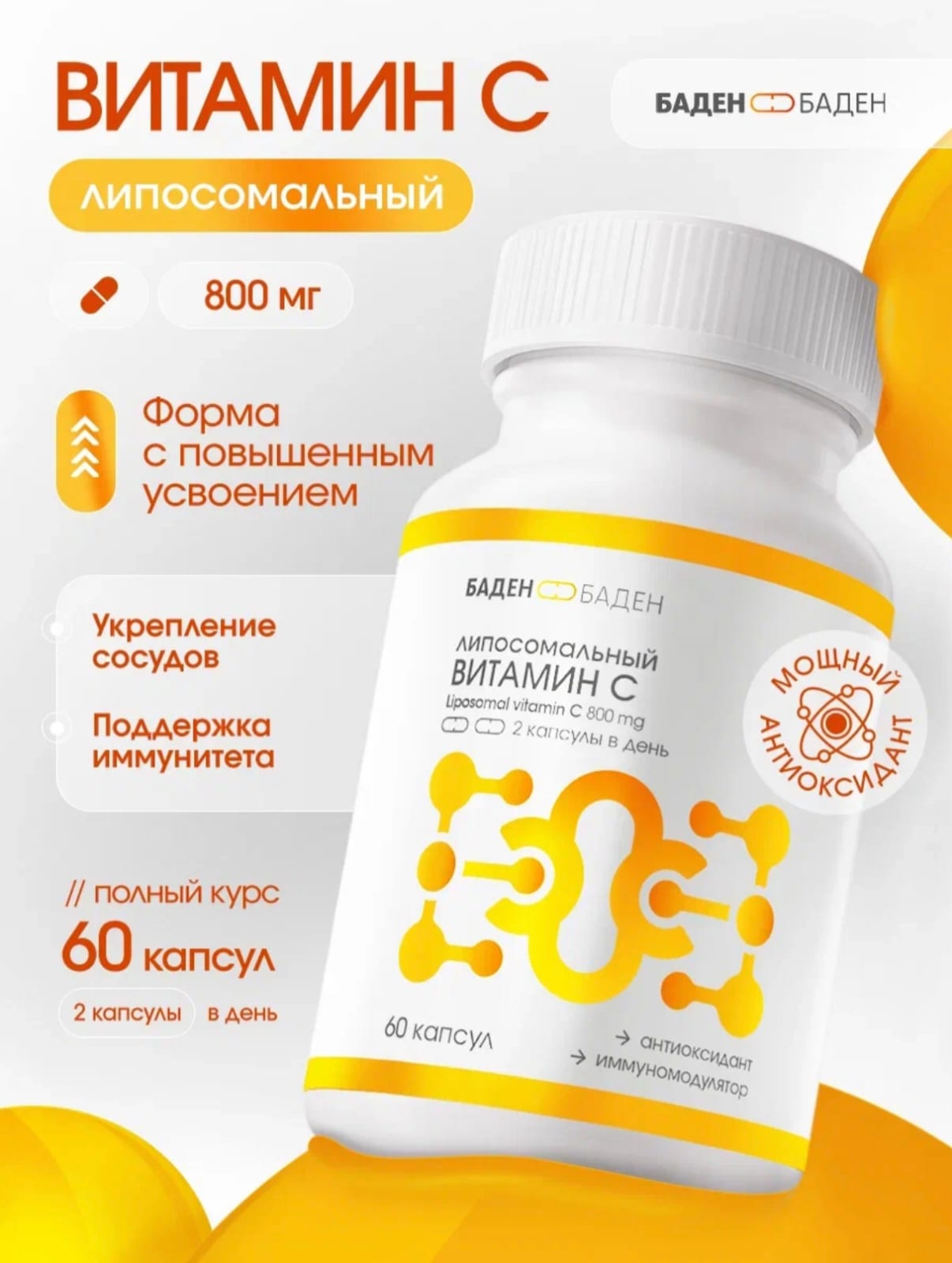 Липосомальный витамин С 800 мг- это современная форма аскорбиновой кислоты, «запечатанной» в микроскопические липосомы. Тонкая жировая оболочка защищает молекулу от кислой среды желудка и доставляет её напрямую к клеткам, поэтому усвоение выше, а действие заметнее уже с первых недель. Препарат помогает укреплять капилляры и поддерживать нормальный тонус сосудистой стенки, что особенно важно при варикозной сетке, склонности к синякам и повышенной ломкости сосудов. Как мощный антиоксидант, витамин С нейтрализует свободные радикалы, усиливает естественную иммунную защиту и сокращает длительность сезонных простуд. Липосомальная форма стимулирует синтез коллагена кожные покровы становятся более упругими, а суставные ткани получают дополнительную поддержку при спортивных нагрузках. Аскорбиновая кислота улучшает всасывание железа из пищи, снижая риск железодефицитной анемии и помогая поддерживать бодрость в течение дня. Формула подходит для людей с активным ритмом жизни, спортсменов, тех, кто восстанавливается после физических нагрузок или ищет «мягкий» витамин С без раздражающего действия на желудок. Капсулы растительного происхождения комфортны даже натощак и не мешают усвоению других микроэлементов.